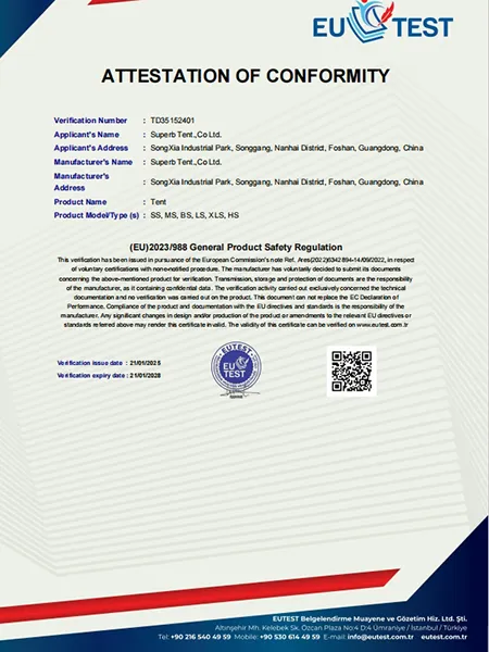 Organized the drafting of the *Industry Standard for Frame-Structured Tents* and obtained "Military Industry Confidentiality Certification."