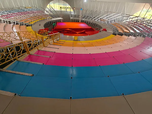 Our circus tents can be equipped with a full range of functional systems to support complete performance operations. From audience seating and performance stages to lighting, flooring, and ticketing areas, each configuration is designed to create a safe, organized, and professional circus environment. All components can be flexibly combined or customized based on your specific show requirements.